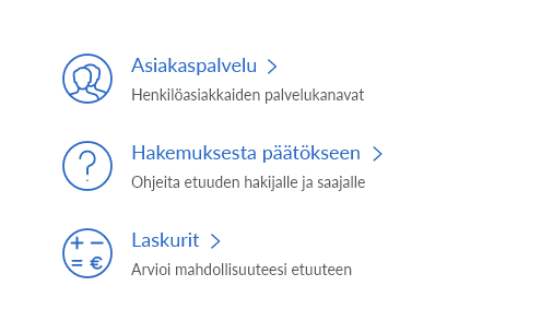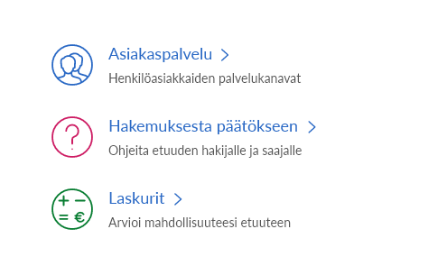 Kela Design Systemin linkkielementeissä käytetään sekä kuvitusikoneja että käyttöliittymäkuvakkeita. Suositeltu kuvaketyyppi käy yleensä ilmi komponenttikohtaisista ohjeista ja esimerkeistä.